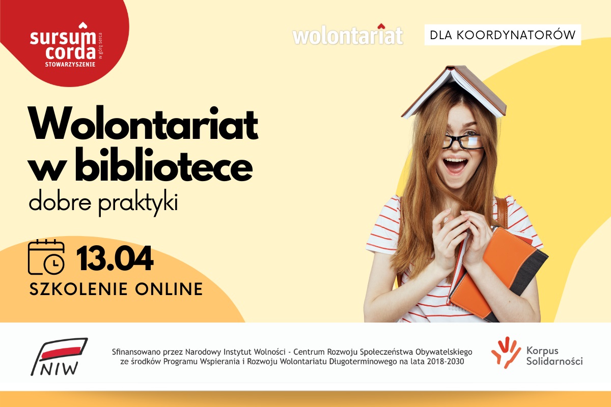 Stowarzyszenie Sursum Corda zaprasza koordynatorów wolontariatu, przedstawicieli bibliotek – szkolnych, publicznych i prywatnych - do udziału w BEZPŁATNYM online szkoleniu rozwijającym – spotkaniu z liderem organizującym pracę wolontariuszy. Spotkanie będzie miało na celu prezentację dobrych praktyk w zakresie efektywnego zarządzania zasobami wolontariackimi, szczególnie motywowania i angażowania się w wolontariat długoterminowy, a także wzmacniania motywacji koordynatorów oraz dyskusji nad narzędziami do przezwyciężania pojawiających się w wolontariacie trudności.